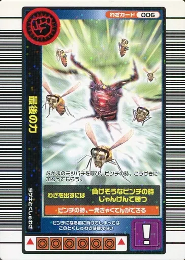 分類:わざカードシリーズ:2004 夏限定商品解説■甲虫王者ムシキングはキミの町のショッピングセンター・ゲームセンターにおいてある甲虫バトルゲームだ!!カードを使って世界中の甲虫による大はく力のムシバトルが楽しめるぞ!