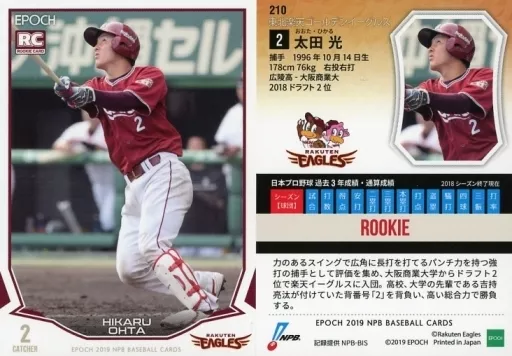 スポーツ/レギュラーカード/東北楽天ゴールデンイーグルス/2019 NPB プロ野球カード 210 [レギュラーカード] : 太田光