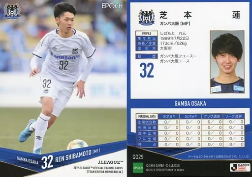 スポーツ/レギュラーカード/2019Jリーグオフィシャルトレーディングカード[チームエディション・メモラビリア]ガンバ大阪 GO29 [レギュラーカード] : 芝本蓮