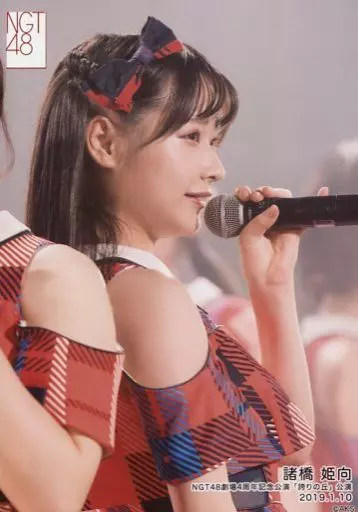 生写真(AKB48・SKE48)/アイドル/NGT48 諸橋姫向/ライブフォト・バストアップ・衣装赤・チェック柄・背中合わせ・体右向き・左手マイク/NGT48劇場4周年記念公演「誇りの丘」公演 ランダム生写真 2020.1.10