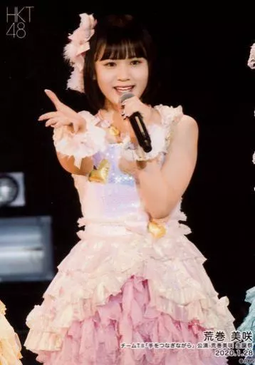 生写真(AKB48・SKE48)/アイドル/HKT48 荒巻美咲/ライブフォト・膝上・衣装白・ピンク・右手パー・正面/HKT48 チームTII「手をつなぎながら」公演 荒巻美咲 生誕祭 ランダム生写真 2020.1.28