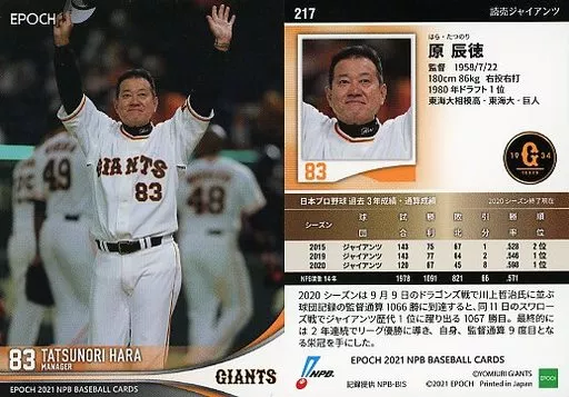 スポーツ/レギュラーカード/2021 NPB プロ野球カード 217[レギュラーカード]:原辰徳