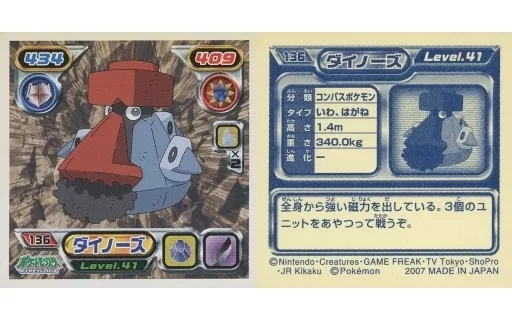 コレクションシール/ノーマル/ポケットモンスターダイヤモンド&パール最強シール烈伝2 136[ノーマル]:ダイノーズ