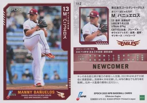 スポーツ/レギュラーカード/EPOCH 2023 NPBプロ野球カード 112[レギュラーカード]:バニュエロス