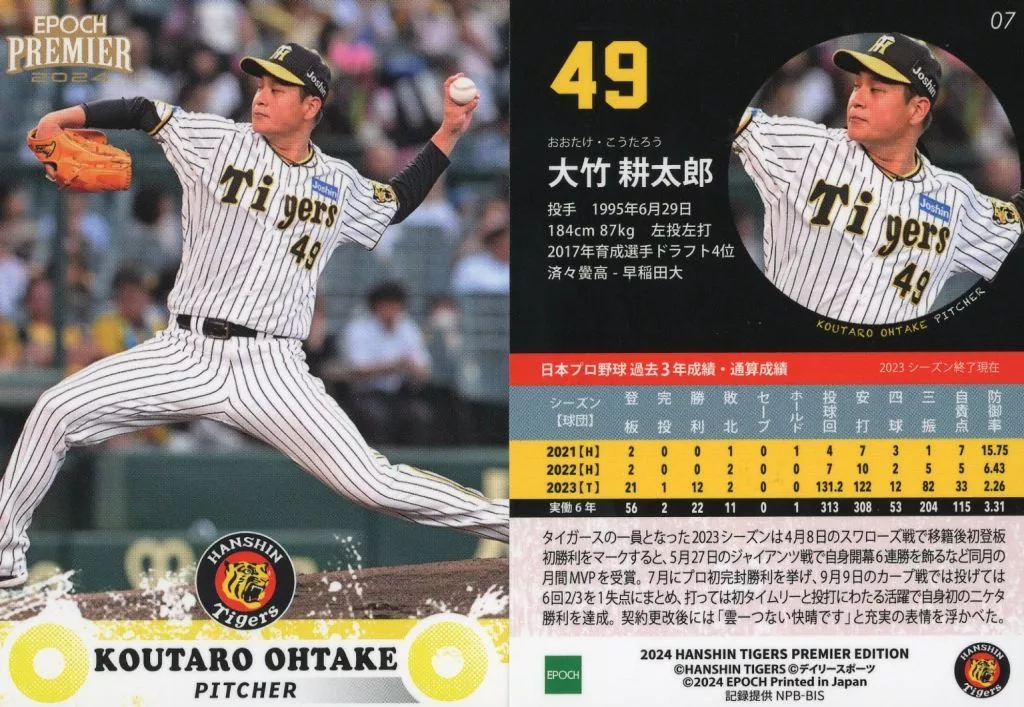スポーツ/レギュラーカード/EPOCH 2024 阪神タイガース PREMIER EDITION ベースボールカード 07[レギュラーカード]:大竹耕太郎