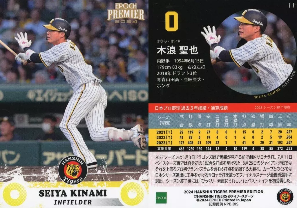スポーツ/レギュラーカード/EPOCH 2024 阪神タイガース PREMIER EDITION ベースボールカード 11[レギュラーカード]:木浪聖也