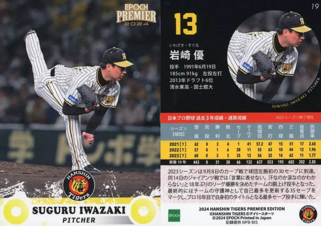 スポーツ/レギュラーカード/EPOCH 2024 阪神タイガース PREMIER EDITION ベースボールカード 19[レギュラーカード]:岩崎優