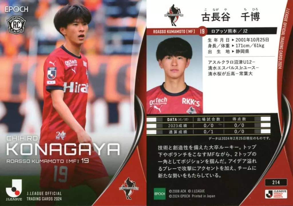 スポーツ/レギュラーカード/EPOCH 2024 Jリーグオフィシャルトレーディングカード 214[レギュラーカード]:古長谷 千博