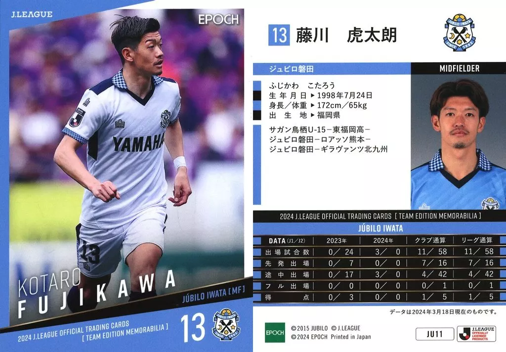 スポーツ/レギュラーカード/2024 Jリーグオフィシャルトレーディングカード [チームエディション・メモラビリア] ジュビロ磐田 JU11[レギュラーカード]:藤川虎太朗