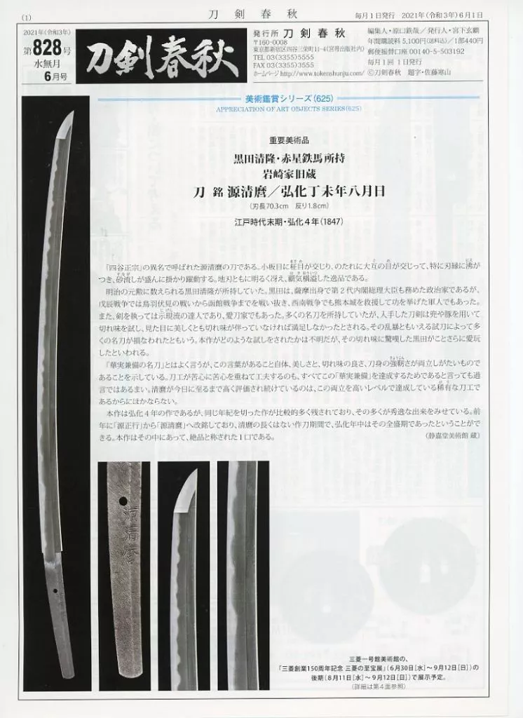 カルチャー雑誌 諸芸・娯楽 刀剣春秋 2021年6月号 第828号 カルチャー