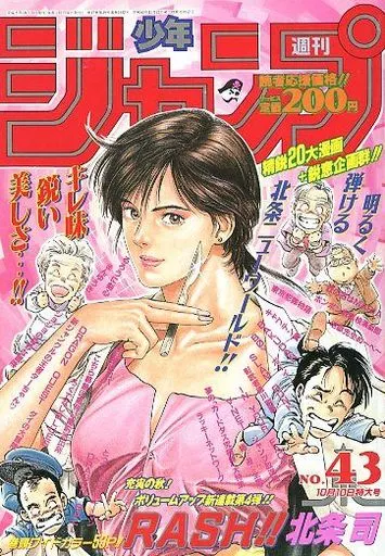 RASH!! 北条司/ドラゴンボール 鳥山明/SLAM DUNK 井上雄彦/こちら葛飾区亀有公園前派出所 秋本治/BOY 梅澤春人/東京犯罪物語 -菩薩と不動- 次原隆二/とっても!ラッキーマン ガモウひろし/キャプテン翼 PRINCIPE DEL SOLE 太陽王子 高橋陽一/地獄先生ぬ~べ~ 真倉翔・岡野剛/BAKUDAN 宮下あきら二/ろくでなしBLUES 森田まさのり/DRAGON QUEST ダイの大冒険 堀井雄二・三条陸・稲田浩司/まんゆうき -ばばあとあわれなげぼくたち- 漫☆画太郎/ジョジョの奇妙な冒険 荒木飛呂彦/ボンボン坂高校演劇部 高橋ゆたか/奴の名はMARIA 道元むねのり/新ジャングルの王者ターちゃん 徳弘正也/影武者 徳川家康 隆慶一郎・曾川昇・原哲夫/るろうに剣心 -明治剣客浪漫譚- 和月伸宏/王様はロバ -はったり帝国の逆襲- なにわ小吉