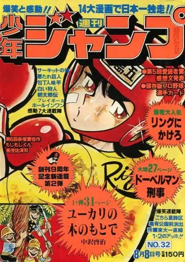 綴込付録:プロ野球選手カード/こちら葛飾区亀有公園前派出所 秋本治/1・2のアッホ!! コンタロウ/サーキットの狼 池沢さとし/もじもじくん 善茂佐清司/朝太郎伝 中島徳博/ユーカリの木のもとで 中沢啓治/ドーベルマン刑事 平松伸二・武論尊/白い狩人 遠崎史朗・小島正春/プレイボール ちばあきお/包丁人味平 牛次郎・ビッグ錠/悪たれ巨人 高橋よしひろ/ホールインワン 鏡丈二・金井たつお/リングにかけろ 車田正美/東大一直線 小林よしのり