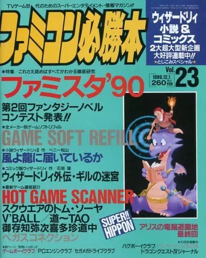 綴込スペシャル:ウィザードリィ小説&コミックス 2大超大型新企画大好評連載中!!/ファミスタ’90/第2回ファンタジーノベルコンテスト発表!!/GAME SOFT REFILL/小説ウィザードリィII 風よ龍に届いているか ベニー松山/コミック版ウィザードリィ ウィザードリィ外伝・ギルの迷宮 石垣環/最新ゲーム徹底紹介 HOT GAME SCANNER:スクウエアのトム・ソーヤ/V’BALL/道~TAO/御存知弥次喜多珍道中/ベガスコネクション/アリスの電脳遊園地 最終回