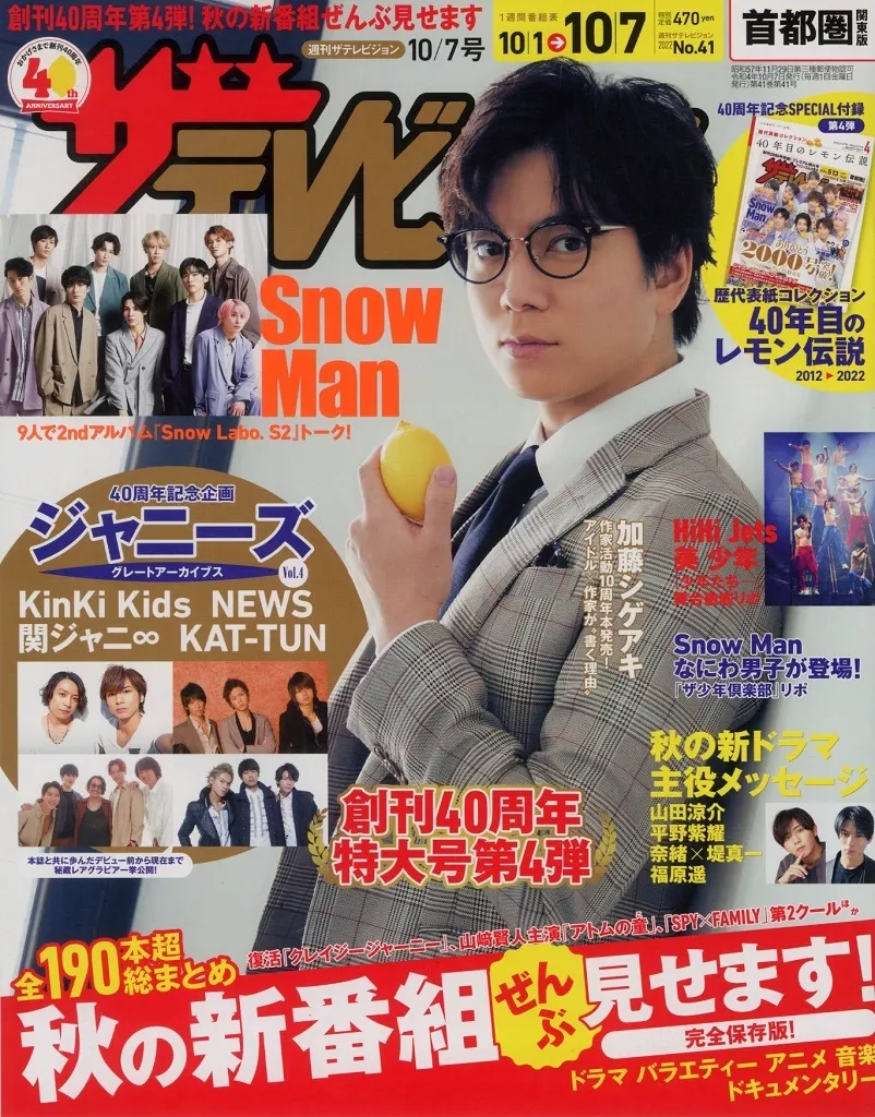 芸能雑誌 付録付)ザ・テレビジョン首都圏版 2022年10月7日号 芸能