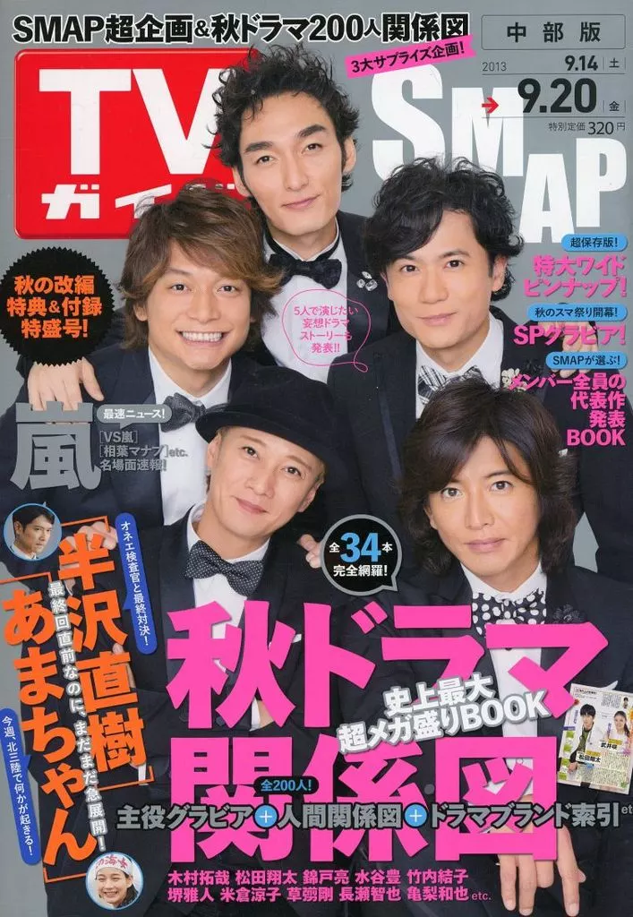 芸能雑誌 付録付)週刊TVガイド(中部版) 2013年9月20日号 芸能
