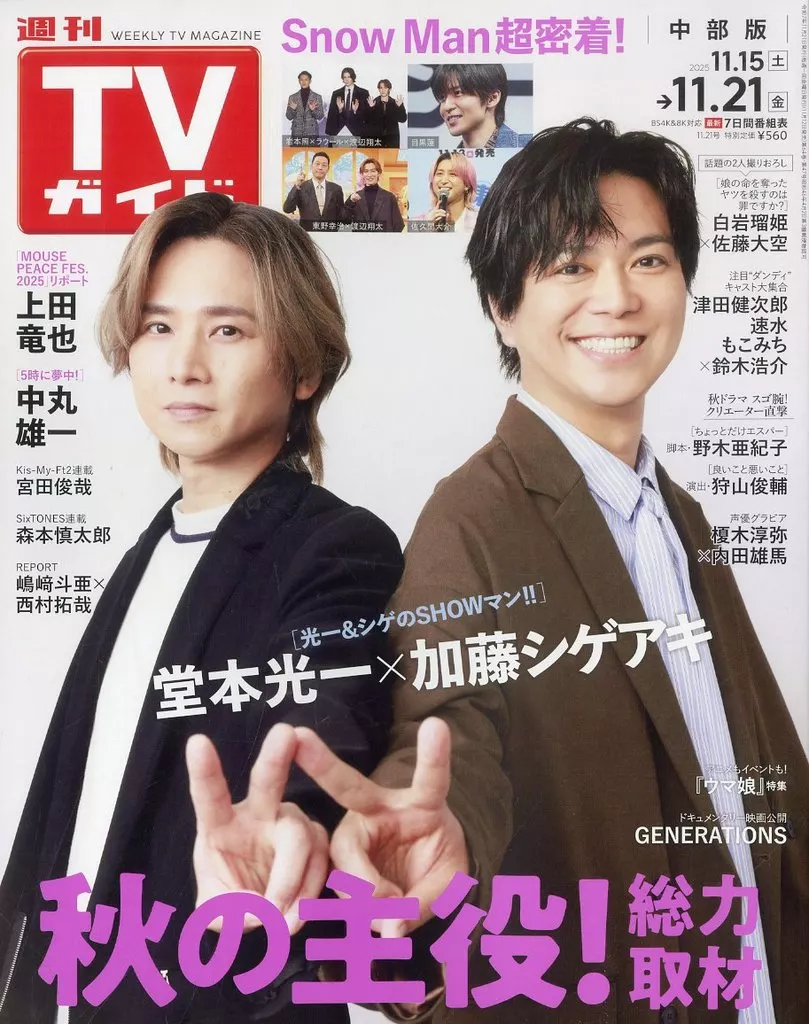 芸能雑誌 週刊TVガイド(中部版) 2025年11月21日号 芸能