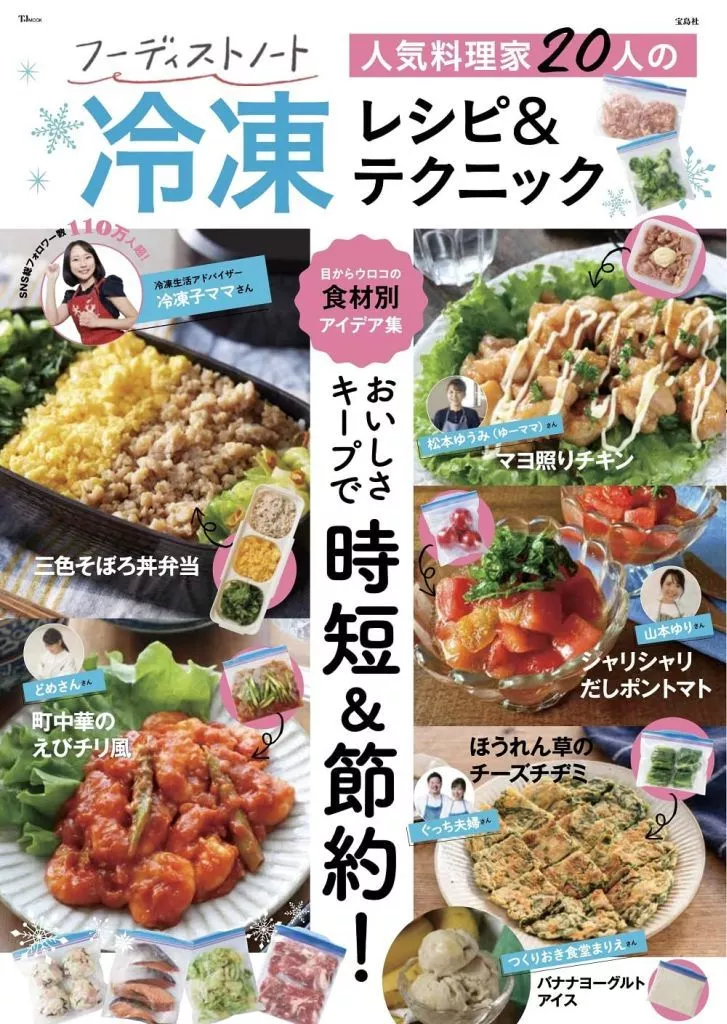 TJMOOK/SNSで活躍する料理家、インフルエンサーが集うメディア「フーディストノート」シリーズ第2弾。次第に暑さが増す季節、節約のためにまとめ買いした食材を腐らせるなんて本末転倒! そんな季節にぴったりなのが「冷凍レシピ」です。本誌では、各方面で活躍する人気料理家さんがやっている、「安く」「ラクに」「おいしく」乗り切る冷凍アイデアを大公開! 食材別に、賢く小分けするテクから冷凍作りおきおかず、凍らせている間に味を染み込ませる下味冷凍テクまで、達人のおいしい冷凍アイデアをたっぷりお届けします。