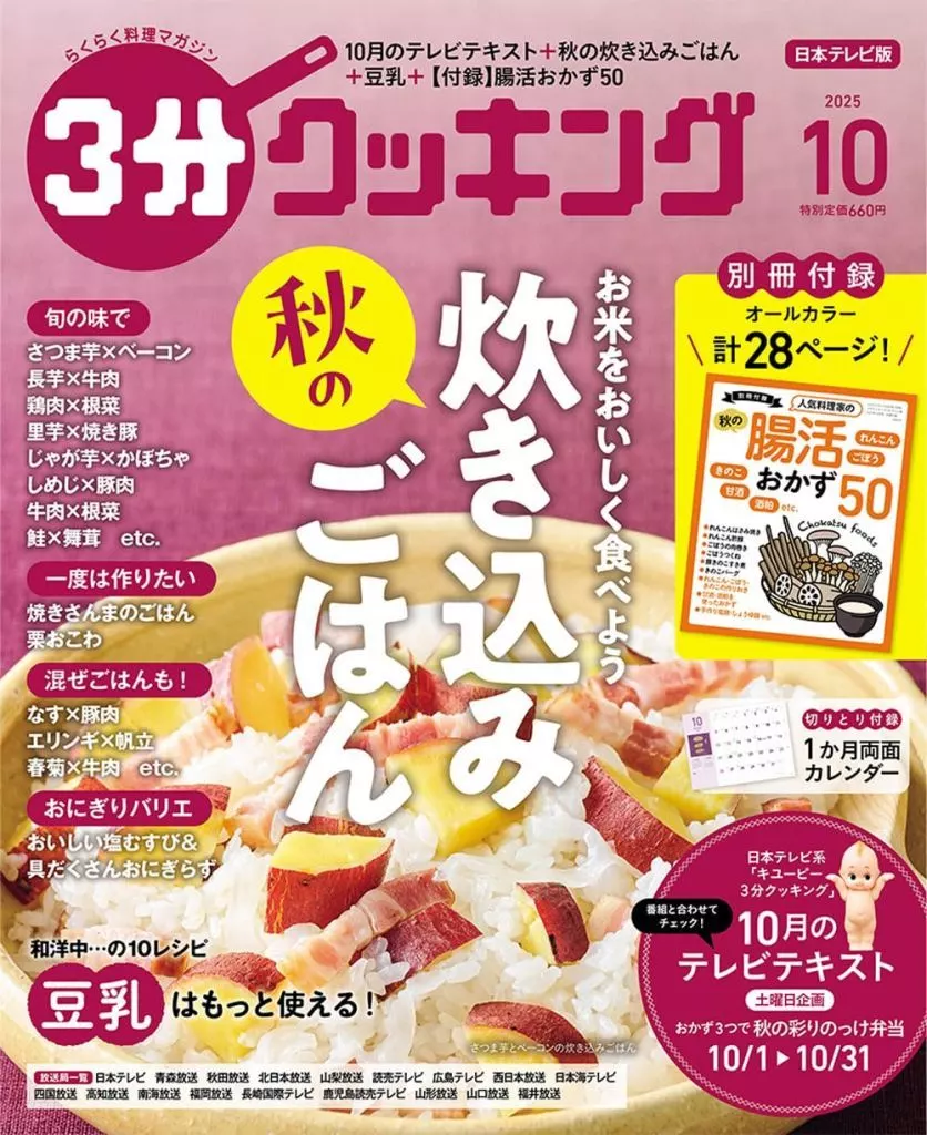 グルメ・料理雑誌 付録付)3分クッキング 2025年10月号 日本テレビ版 料理