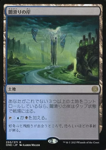 マジックザギャザリング/日本語版/R/土地/ファイレクシア:完全なる統一 250/271[R]:【ONE】闇滑りの岸/Darkslick Shores