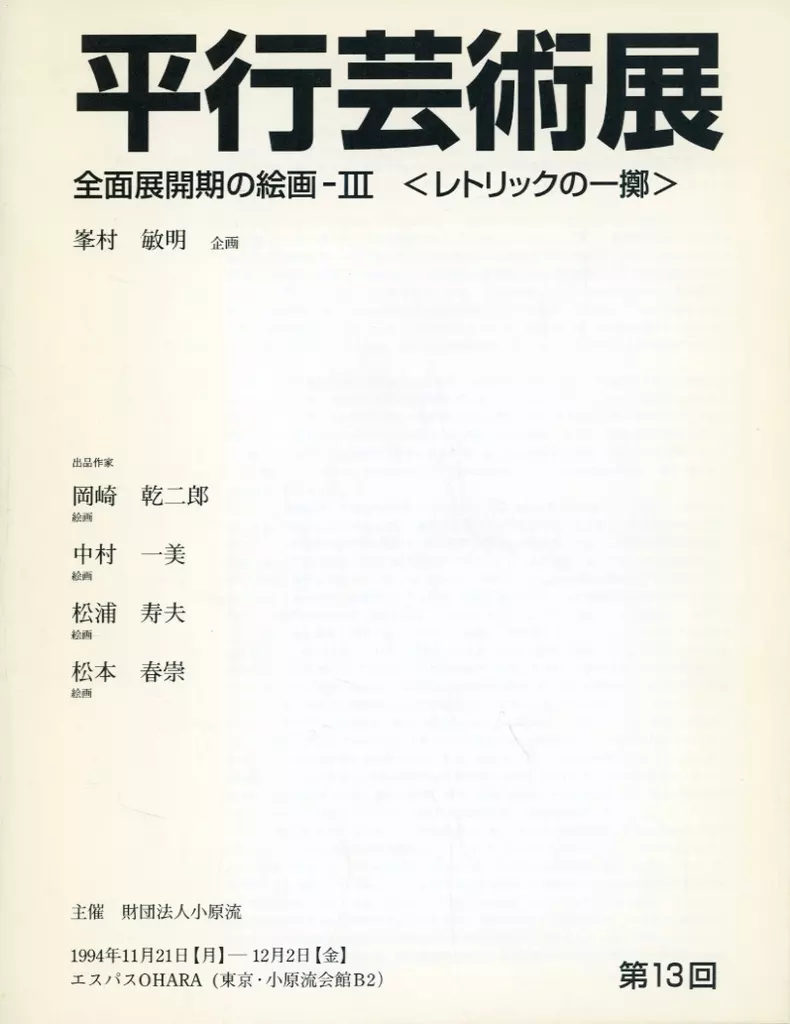 パンフレット パンフレット(図録) パンフ)第13回 平行芸術展 全面展開期の絵画-III <レトリックの一擲> 図録