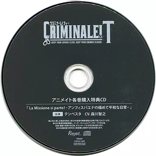Nome do produto em japonês: アニメ系CD ドラマCD カレと48時間を駆け抜けるCD クリミナーレ!T Vol.3 テンペスタ アニメイト特典ドラマCD「La Missione si parte アンフィスバエナの極めて平和な日常 テンペスタver」