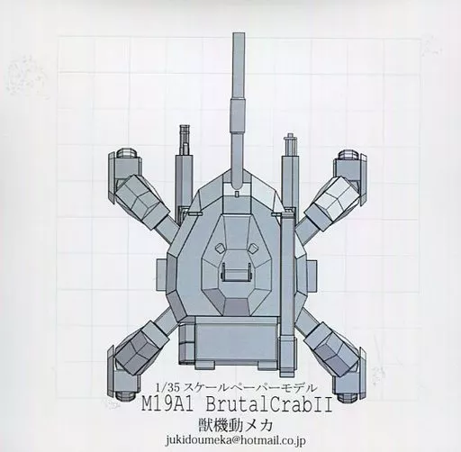 Nome do produto em japonês: 同人データ集 CDソフト 1/35スケールペーパーモデル M19A1 BrutalCrabII / 獣機動メカ