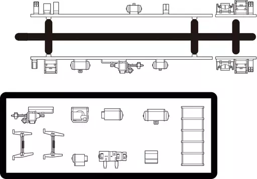 Descrição do Produto ■ O equipamento sob o piso dos antigos comboios de desempenho (os chamados "antigos eléctricos nacionais") na era dos caminhos-de-ferro nacionais japoneses consiste em equipamentos eléctricos (controladores, resistências, disjuntores, geradores de motores, caixas de baterias, caixas de fusíveis, etc.) e equipamentos relacionados com o ar (compressores de ar, tanques de armazenamento de ar, cilindros de travagem, etc.).