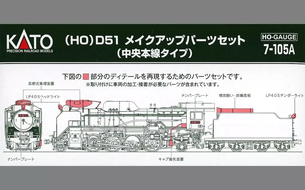 ● (HO) D51 tipo de produção em massa padrão é composto por números e folhas de letras, etc., que são específicos da região, como o equipamento de recolha de fumo característico e o tanque de óleo pesado, etc., que são vistos de acordo com a rota e a ala de afiliação. Você pode reproduzir o D51 de sua forma favorita.