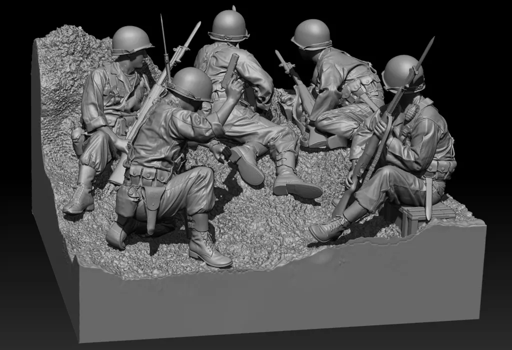 Cinco soldados do Exército da Coreia do Sul pertencentes às Nações Unidas foram modelados com base em diorama.