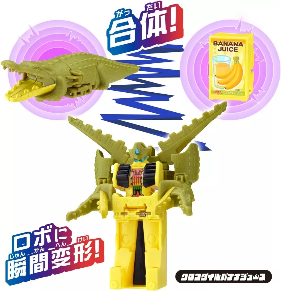 Descrição do produto ■ "Crocodilo" e "sumo de banana" combinam e instantaneamente formam um conjunto de ユニトロボ!