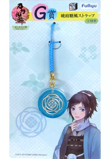 Descrição do produto ■ "Minna no Kujigatana Ranbu -ONLINE - Hikikake no Jin - com Wagashi (doces japonês)" G Prize Amber sugar style strap.