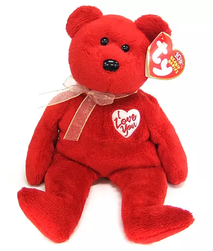Este é um animal de peluche bonito com "I Love You" bordado no peito.