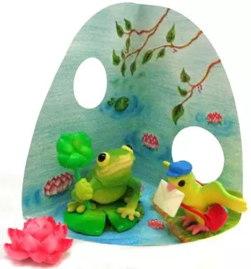 Este produto vem com um sapo e um pequeno pássaro do carteiro.