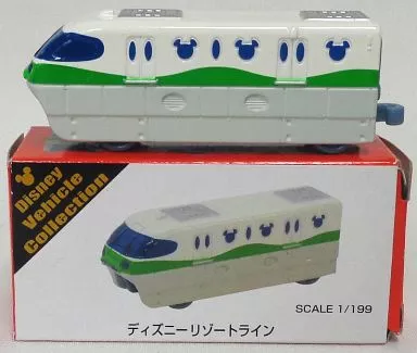 Descrição do produto ■ "Tomica Disney Vehicle Collection" tem uma linha de 1/199 Disney Resort (branco, verde e cinza).