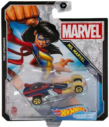 Descrição do produto "Hot Wheels Studio Character Chanel Car MARVel" tem 1/64 MS. MARVel.