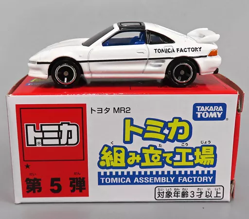 A Toyota MR2 (White x Black/Blue) 1/59 está disponível na Fábrica de Montagem de ■「 Tomica. Este produto tem corpo branco x preto e interior azul.