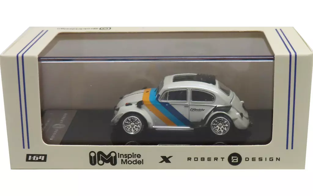 Descrição do produto ■ RWB BEETLE (branco, azul e amarelo) está agora disponível em um modelo de exibição de escala 1/64.
