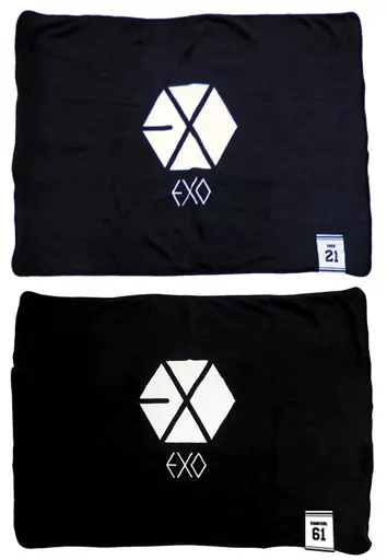 Um cobertor com o nome de cada membro EXO na parte da marca