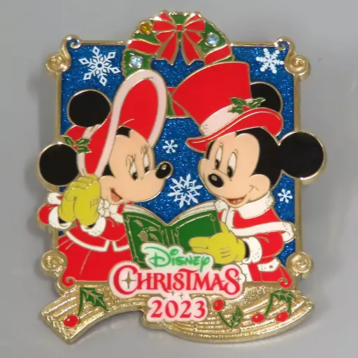 Descrição do Produto ■ Crachá de alfinete com Mickey e Minnie cantando canções de Natal