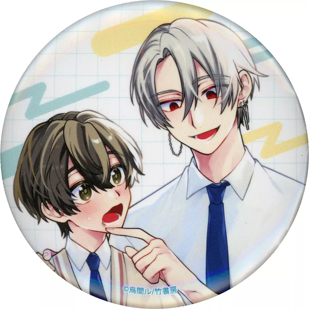 Nome do produto em japonês: バッジ・ビンズ 烏間ル(ハッピーファニーストークデイズ) 「学生たちの初デートプラン@池袋 BLフェア by eeo 缶バッジ 03/ブラインド(描き下ろしイラスト)」