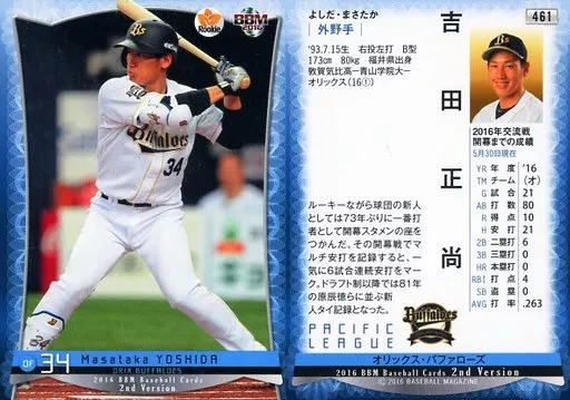 Nome do produto em japonês: BBM/レギュラーカード/オリックス・バファローズ/BBM2016 ベースボールカード 2ndバージョン 461[レギュラーカード]:吉田正尚