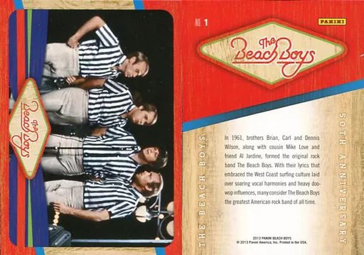 Cartão de colecção (masculino) / 2013 PANINI THE BEACH BOYS TRADING CARD NO. 1 : The Beach Boys / Group (4 pessoas) / Base Card (Regular Card) / 2013 PANINI THE BEACH BOYS TRADING CARD
