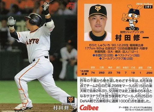 Nome do produto em japonês: スポーツ/レギュラーカード/2016プロ野球チップス第3弾 191[レギュラーカード]:村田修一