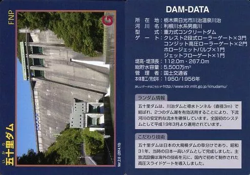 Nome do produto em japonês: 公共配布カード/栃木県/ダムカード Ver.2.0 (2014.10):五十里ダム