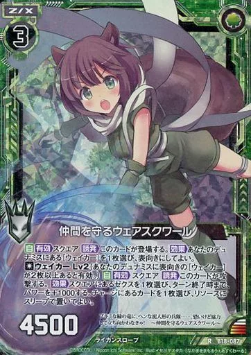 Nome do produto em japonês: ゼクス/R/ゼクス/緑/第18弾『真神降臨編 覚醒する希望』 B18-087[R]:仲間を守るウェアスクワール(ホログラムレア)