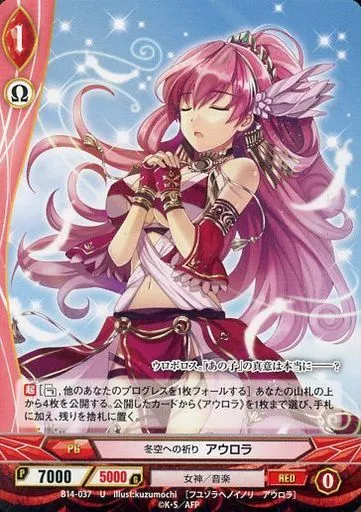 Nome do produto em japonês: アンジュ・ヴィエルジュ/U/赤/PG/女神/音楽/ブースターパック「三千世界の超越者」 B14-037[U]:冬空への祈り アウロラ