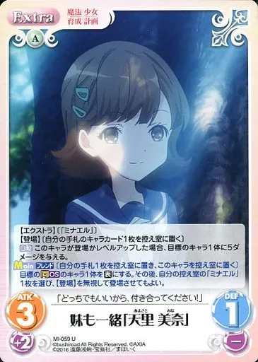 Nome do produto em japonês: カオス/U/Extra/風/ブースターパック 魔法少女育成計画 MI-059[U]:妹も一緒「天里 美奈」