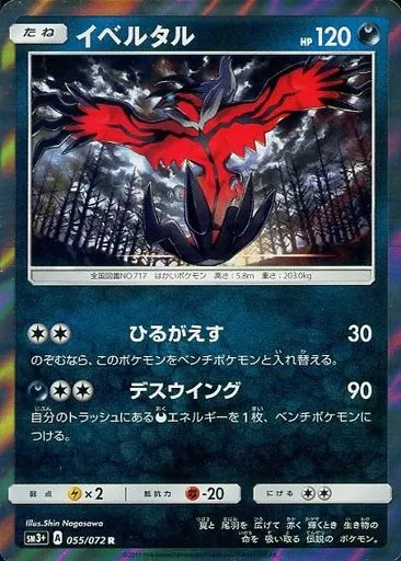 Nome do produto em japonês: ポケモンカードゲーム/R/悪/サン&ムーン 強化拡張パック ひかる伝説 055/072[R]:(キラ)イベルタル