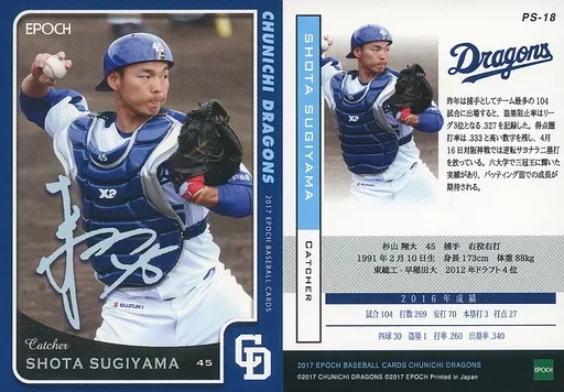Nome do produto em japonês: スポーツ/レギュラーパラレルカード/EPOCH ベースボールカード 2017 中日ドラゴンズ PS-18 [レギュラーパラレルカード] : 杉山翔大(プリントサイン入り)