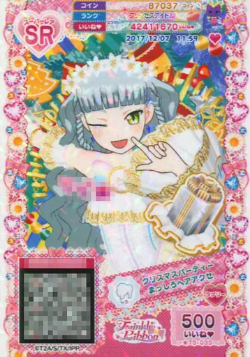 Nome do produto em japonês: プリパラ/スーパーレア/マイチケ/ヘアアクセ/ラブリー/TwinkleRibbon/タイム5弾 ★T5-035[SR]:クリスマスパーティーまっしろヘアアクセ
